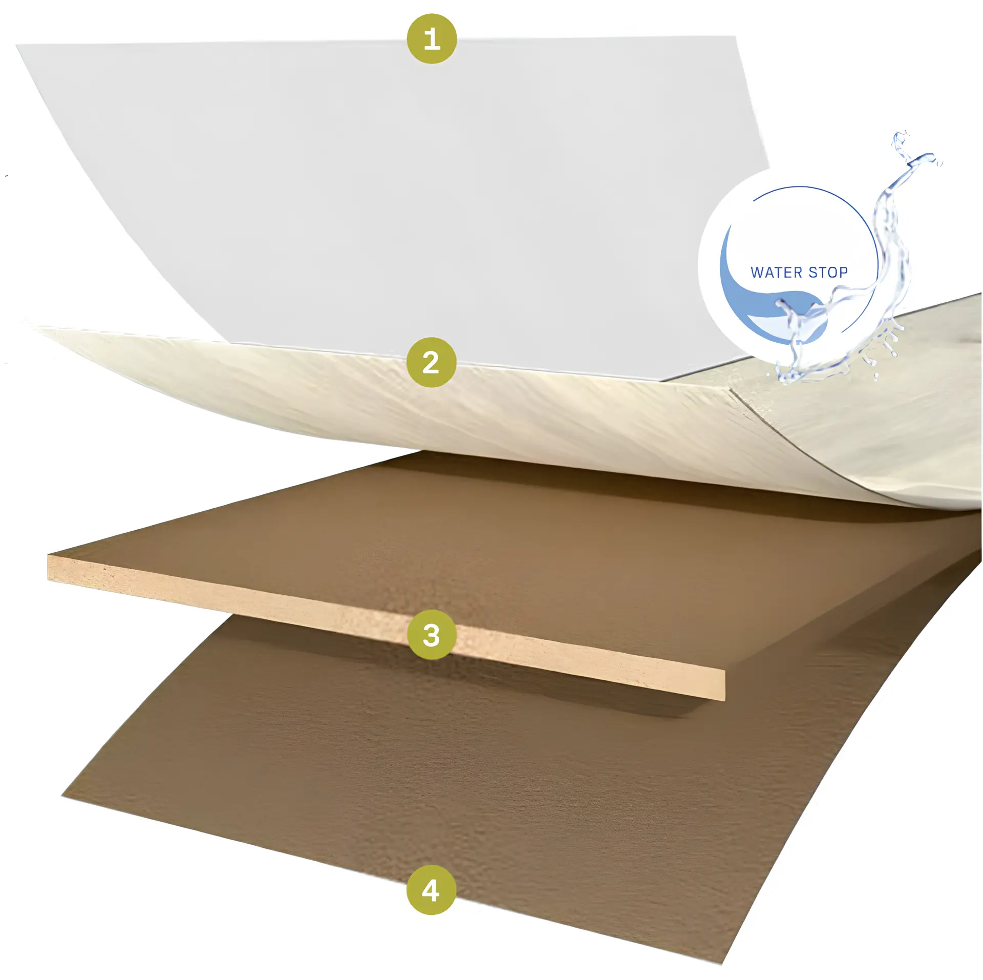 De dragerplaat bestaat uit samengeperste houtvezels. De zeer dichte plaat is vormvast en bestand tegen vormveranderingen. Daarnaast krijgt de dragerplaat een opzwelbescherming die tegen vocht beschermt.