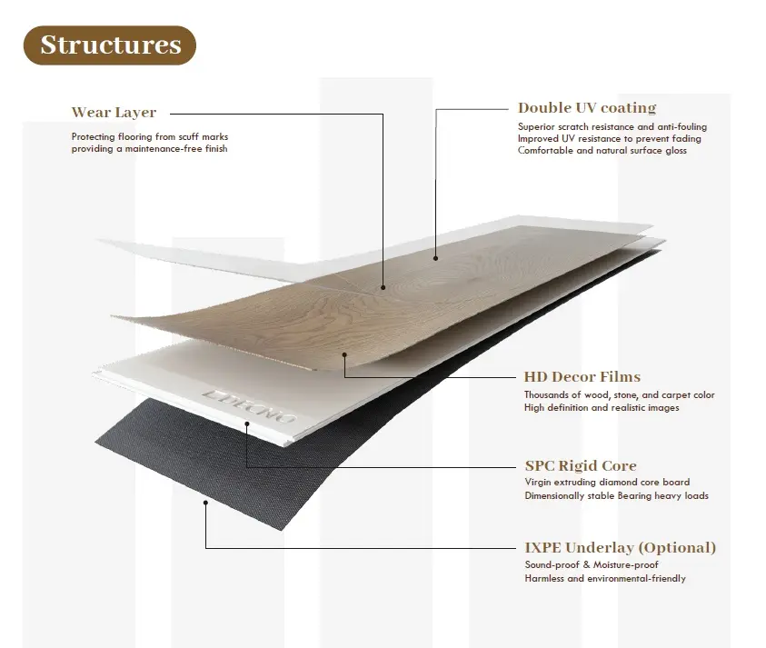 Geproduceerd met geïntegreerde extrusietechnologie, zo beschikt uw SPC-vloer over een kern met hoge sterkte die bestand is tegen het kromtrekken, barsten en vervorming.